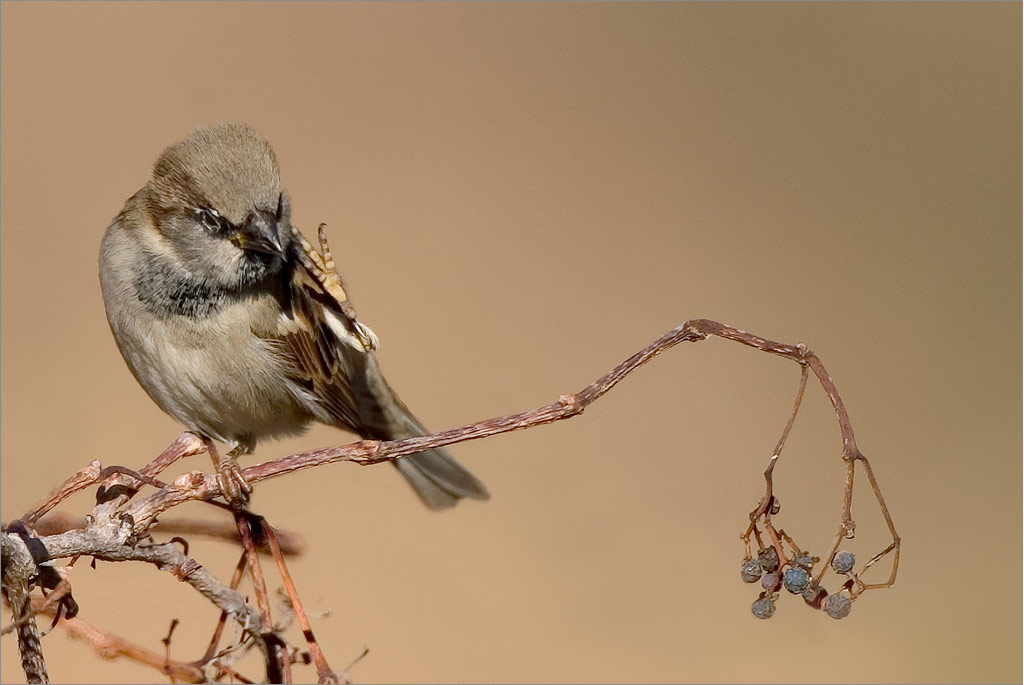 Male House Sparrow (Passer domesticus) Gotta itch!